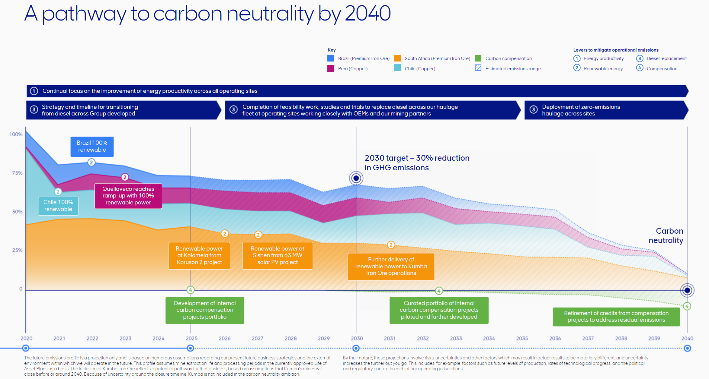 However, we have always been clear that the pathway to decarbonise will be non-linear. We are actively working on all the levers available to decarbonise our operations, but displacing diesel and the use of compensation will deliver reductions only in the 2030s.